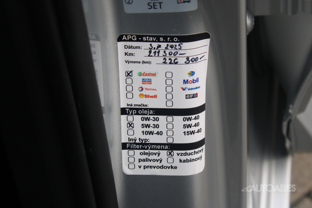Vozidlo ako nové kupované na Slovensku. Skelet vozidla je nehavarovaný. Ku vozidlu je vystavený výpis zo štátneho Registra prevádzkových záznamov vozidiel - ODO-PASS, ktorý zobrazuje históriu najazdených kilometrov vozidla! Originálne najazdené kilometre si môžete overiť aj u ktoréhokoľvek oficiálneho predajcu Škoda. K dispozícií elektronická servisná kniha. Posledná servisná prehliadka 3. 7. 2025 pri 211 300 km - výmena oleja a filtrov. Výmena rozvodov 10. 4. 2024 pri 182 400 km. Obuté letné pneumatiky na hliníkových diskoch 215/55 R17. Karoséria vozidla maximálne zachovalá, bez škrabancov a preliačenín, žiadna viditeľná korózia, iba bežné opotrebenie. Interiér vozidla udržiavaný a nezničený po nefajčiarovi. Nápravy a podvozok v poriadku, pri jazde nič nebúcha ani nevibruje. Automatická prevodovka radí hladko a bez trhania. Vozidlo momentálne bez ďalšej nutnej investície, iba sadnúť a jazdiť. K autu je 2 x originál kľúč škoda + návod na obsluhu. AUTOALLES: najväčší slovenský autobazár, už od roku 1990, doživotná záruka na pôvod vozidla s garanciou vrátenia peňazí. Tešíme sa na vašu návštevu.
